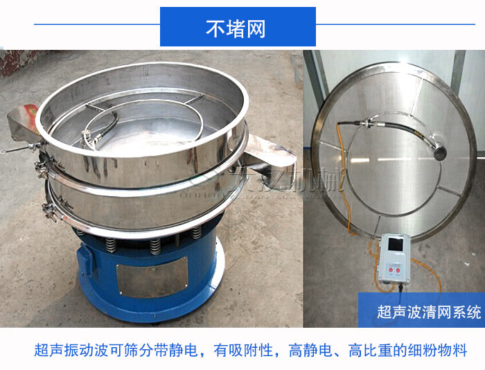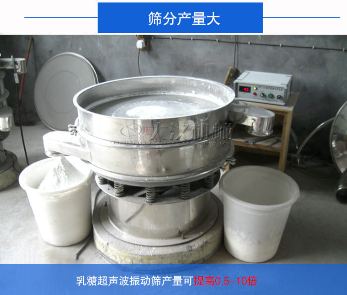 超聲波振動(dòng)篩比不安裝超聲波的振動(dòng)篩過網(wǎng)率增加5-20倍,篩分精度可提高1—70%,在保證篩分效果的前提下,乳糖超聲波振動(dòng)篩產(chǎn)量可提高0.5-10倍。