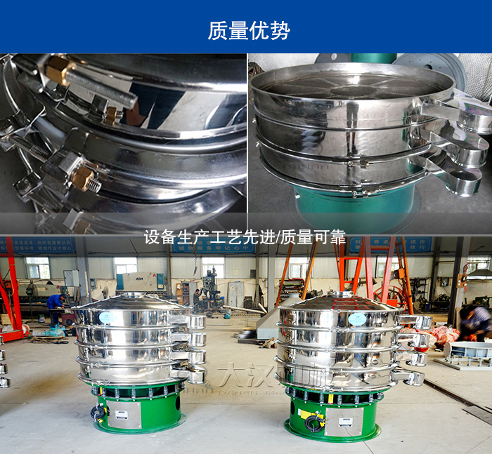 大漢廠家有全新的設(shè)備生產(chǎn)工藝且生產(chǎn)設(shè)備的材質(zhì)也是較好的,并且在生產(chǎn)的時(shí)候細(xì)節(jié)問(wèn)題處理的也非常到位,多層旋振篩在出廠前還要再次進(jìn)行設(shè)備質(zhì)量的檢測(cè),因此設(shè)備的質(zhì)量是非常有保證的,用戶可以放心使用。