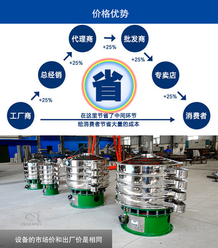 在保證設(shè)備質(zhì)量的前提下,多層旋振篩價(jià)格也是比較經(jīng)濟(jì)實(shí)惠的,為了用戶加工廠整體的效益能夠達(dá)到更大化,我們都是采用較低的價(jià)格來(lái)銷售設(shè)備的,設(shè)備的市場(chǎng)價(jià)和出廠價(jià)是相同的,具體價(jià)格請(qǐng)點(diǎn)擊在線咨詢獲取。