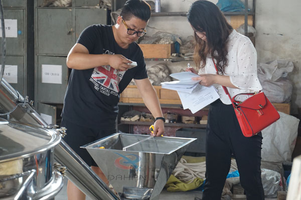 發(fā)貨前客戶來廠檢測產(chǎn)品有沒有按照客戶得要求來做,比如進料口尺寸,設(shè)備得高度、進出料口得位置等