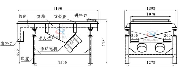 該產(chǎn)品為1000mm(寬)x2000mm(長)一層兩個(gè)出料口碳鋼材質(zhì)鐵質(zhì)網(wǎng)架結(jié)構(gòu)直線振動(dòng)篩篩。