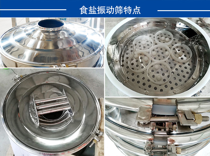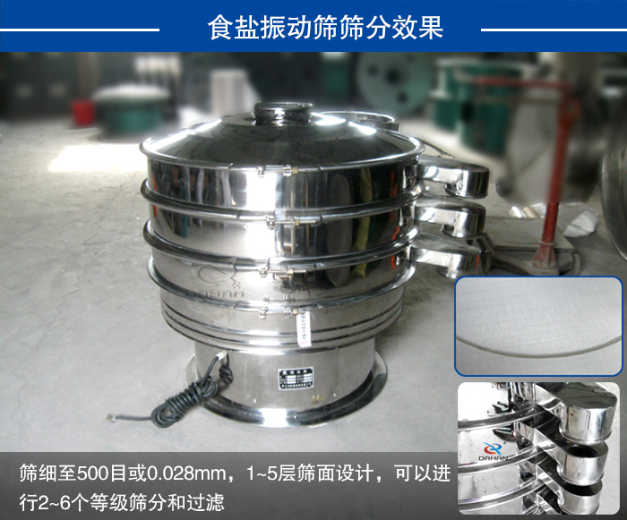 大漢食鹽振動篩細(xì)至500目或0.028mm,1~5層篩面設(shè)計,可以進(jìn)行2~6個等級篩分和過濾,保證了食鹽振動篩的篩分量,并且大漢食鹽振動篩整機采用304不銹鋼材質(zhì),振動篩密封件材質(zhì)要選擇硅膠材質(zhì),可以保證食鹽在篩分過程中不被污染,進(jìn)一步提高了食鹽的篩分精度。