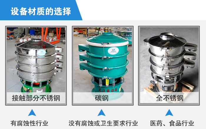 根據(jù)物料性質(zhì)與生產(chǎn)環(huán)境不同,三次元旋振篩所用材質(zhì)也不相同,三次元旋振篩常用材質(zhì)為Q235碳鋼和304不銹鋼材質(zhì),對于沒有腐蝕或衛(wèi)生要求的選擇碳鋼即可,而針對醫(yī)藥、食品行業(yè)需要選擇304不銹鋼材質(zhì)的設(shè)備,而如果腐蝕性強就需要選擇316L不銹鋼材質(zhì)。