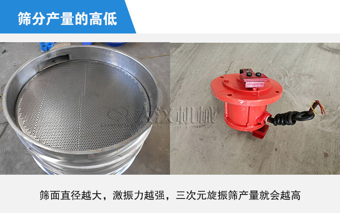 篩分精度代表著成品質(zhì)量,而決定三次元旋振篩篩分精度是電機激振力、篩面有效篩分面積、篩網(wǎng)孔徑,用戶在選擇是應(yīng)根據(jù)生產(chǎn)要求合理選擇。