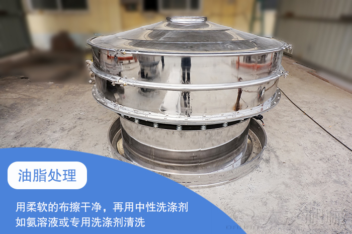 不銹鋼振動(dòng)篩表面的油脂、潤(rùn)滑油等污染,先用柔軟的布擦干凈,然后再用中性洗滌劑如氨溶液或?qū)S孟礈靹┣逑础?/p>