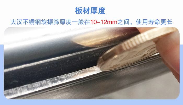不銹鋼旋振篩說(shuō)的是整機(jī)或與物料接觸部位為304不銹鋼材質(zhì),有的廠家為了降低生產(chǎn)成本,將其板材厚度降低至4mm以下,雖然其價(jià)格會(huì)比較便宜,但是在后續(xù)使用過(guò)程中就會(huì)出現(xiàn)篩框斷裂、壽命降低等問(wèn)題,所以選擇不銹鋼旋振篩時(shí)請(qǐng)先查看板材厚度是否合格,大漢不銹鋼旋振篩厚度一般在10-12mm之間,使用壽命更長(zhǎng)。