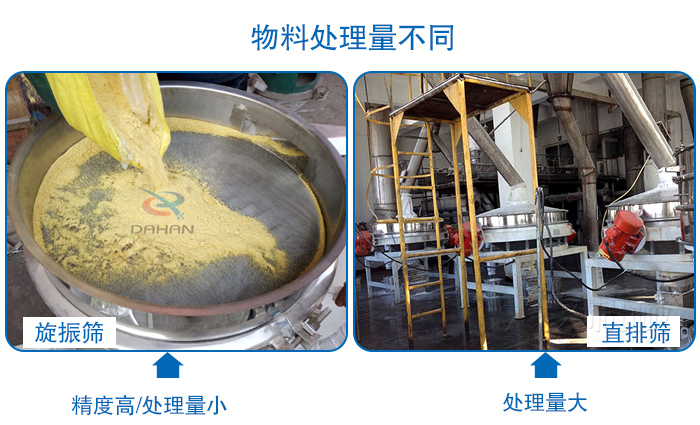 直排篩則多用于面粉、淀粉、洗衣粉、金屬粉、添加劑、化工、非礦等行業(yè)的顆粒粉末的粗略篩分、篩分精度可達(dá)400目,處理量大、易與生產(chǎn)線結(jié)合。