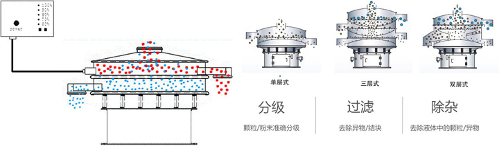 在篩箱的振動(dòng)作用下,物料在篩面上產(chǎn)生螺旋狀運(yùn)動(dòng)。較大的物料被離心力推向篩箱的外側(cè),而較小的物料則逐漸通過(guò)篩孔,落入下方的出料口。篩孔的大小可以根據(jù)物料的要求進(jìn)行選擇,以實(shí)現(xiàn)不同粒徑的篩分和分級(jí)。
