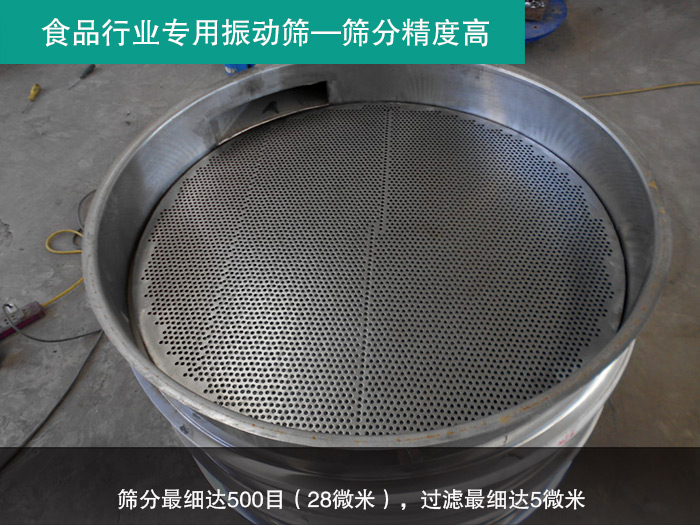 不銹鋼振動篩篩分精度高,篩分細達500目(28微米),過濾細達5微米,符合食品行業(yè)的高精度篩分需求。