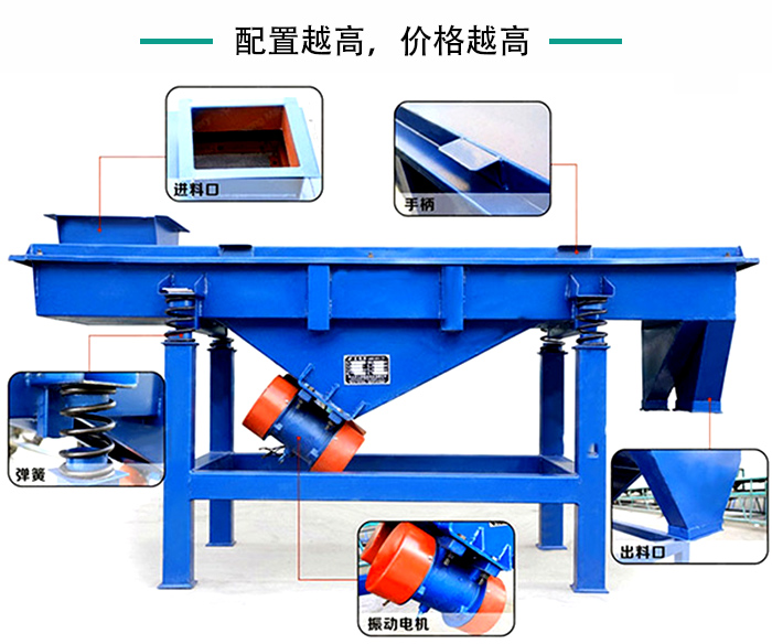時產3噸活性炭振動篩主要由篩箱、篩框、篩網、振動電機、電機臺座、減振彈簧,支架等組成,選擇不同配置的活性炭振動篩都會對價格造成一定的影響,配置越高,價格越高。